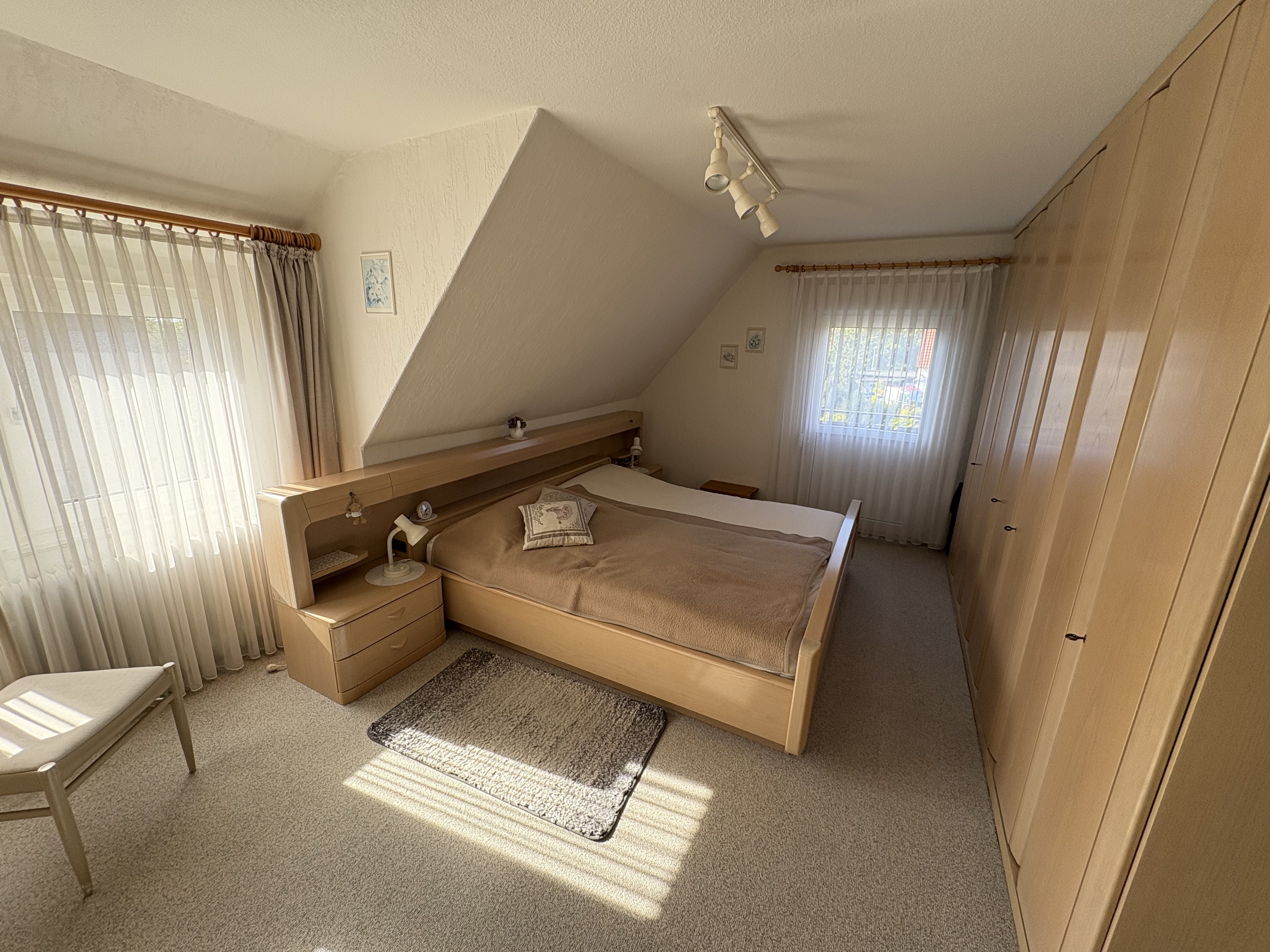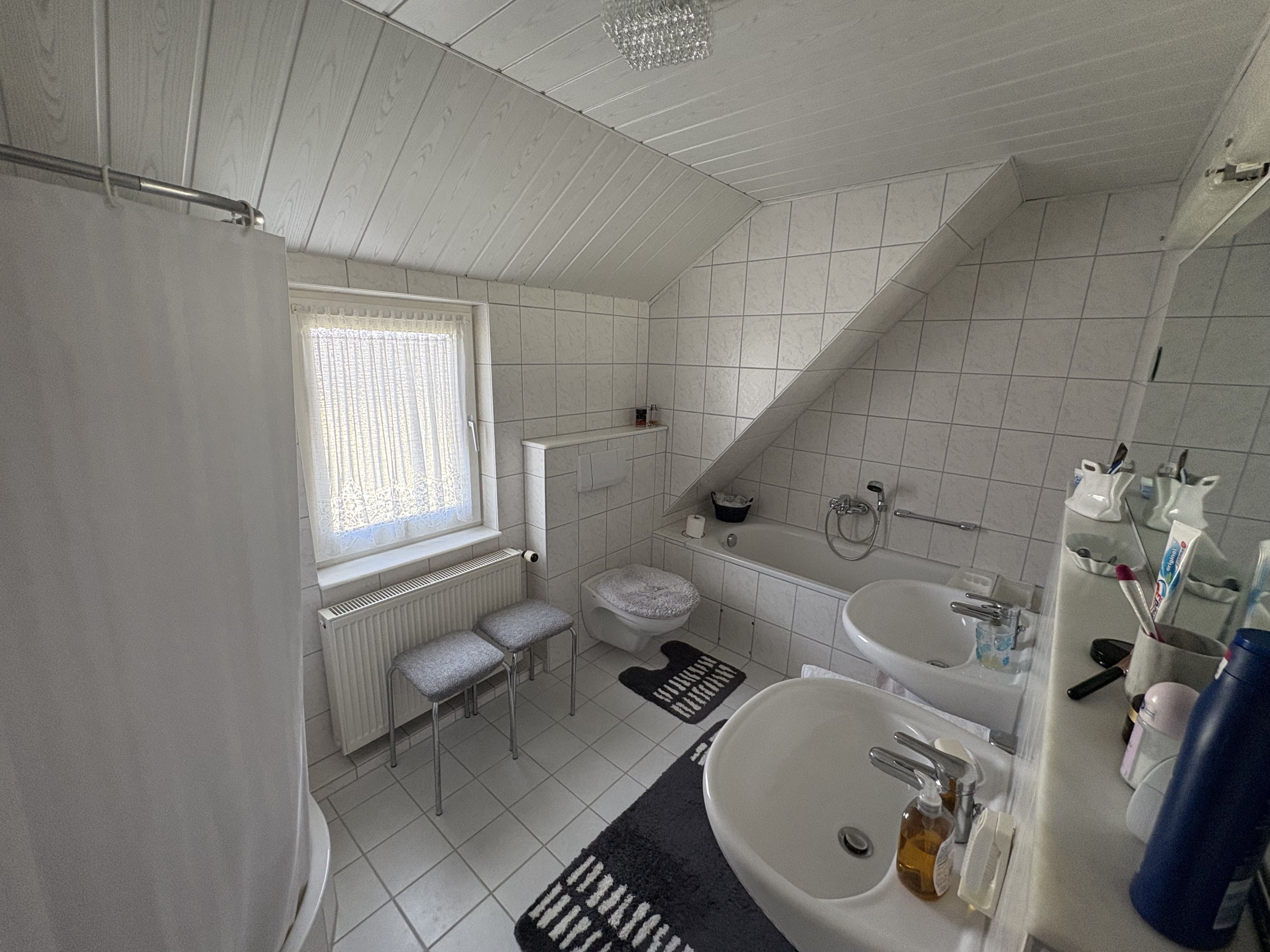 Das Erdgeschoss bietet ein helles Wohnzimmer, ein separates Esszimmer, eine Küche, eine Diele, einen Windfang sowie ein Gäste-WC. Im Dachgeschoss stehen drei gut geschnittene Schlafzimmer sowie ein Badezimmer mit Dusche und Badewanne zur Verfügung.